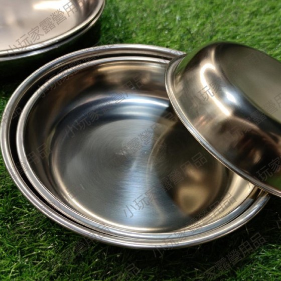 【小玩家露營用品】304不鏽鋼菜盤 露營分裝必備餐盤! 居家戶外都可以 方便收納不占空間 ============== 【產品介紹】 菜盤組(附網袋) 16 cm 304不鏽鋼餐盤*1 18 cm 304不鏽鋼餐盤*1 20 cm 304不鏽鋼餐盤*1 22 cm 304不鏽鋼餐盤*1 24 cm 304不鏽鋼餐盤*1 單入無網袋需另購