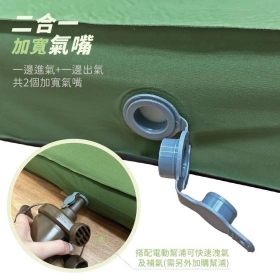 ◆ 2合1加寬快速氣嘴,快速吸氣澎起,亦可搭配電動幫浦快速抽淨空氣,睡墊吸扁扁的好折收,用人工收折也可以。