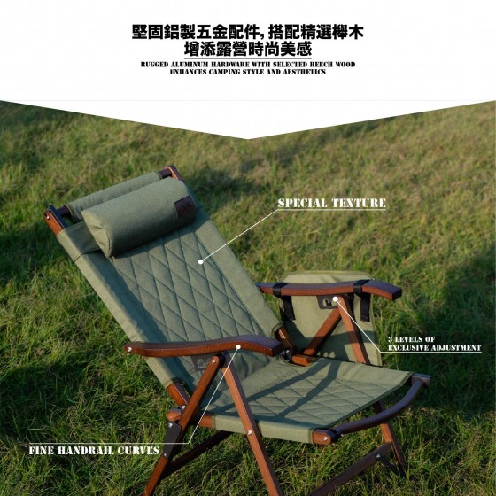 椅背三段角度調整 實木材質,質感滿分 頸枕可拆式設計,清洗更便利 椅背戰術織袋+網袋設計,吊掛收納更便利 附椅側置物袋,手機、行充隨手拿、隨手放 收納體積小,攜帶便利 名稱:實木高背可拆折疊椅 尺寸: 展開尺寸:55*53.5*(h)88/84/76 cm 收納尺寸:85*23*16.5 cm 外箱尺寸:86*23*17 cm 靜態承重:約120 kg 材質:櫸木、1000D牛津布 淨重:5.1 kg 顏色:黑色/沙色/軍綠