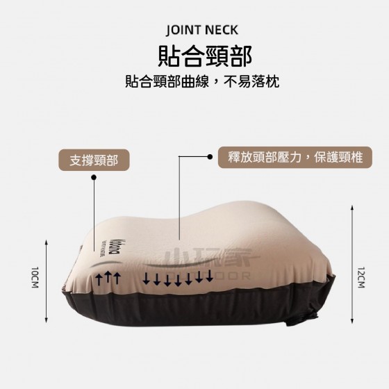 柔軟舒適的高彈海綿,防撕裂春亞紡面料 外層是3D彈力面料,內部是高回彈海綿 貼合頸部曲線,不易落枕 自動充氣設計,雙層氣閥 第一層:為防止漏氣的單向充氣系統 第二層:打開即可快速放氣 體積小,方便攜帶