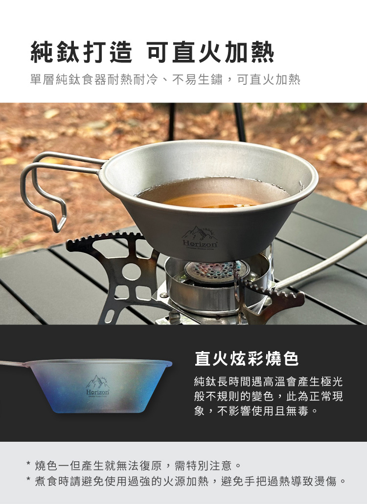 單層純鈦打造,可直火加熱