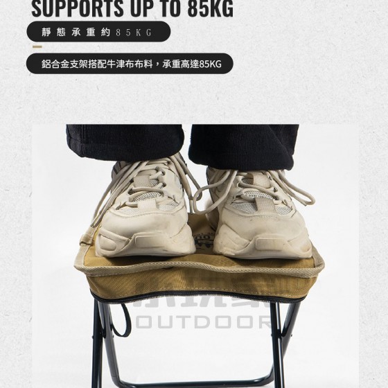 📢選材兼具輕盈,堅硬特色,耐磨抗腐蝕,使用壽命長 📢600D牛津布面料,柔韌耐磨抗撕裂,疏水性更好,耐磨更耐髒 📢鋁合金支架搭配牛津布布料,承重高達85KG 📢摺疊收納 攜帶方便 📢不用時輕鬆納入包,適合多種環境,用途廣泛 顏色:卡其 / 軍綠 重量:352G 尺寸:展開:28*28*30CM 收納:29*11.5*24CM 材質:鋁合金 / 牛津布 產地:中國