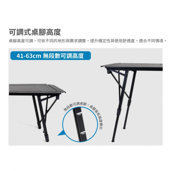 ※桌腳高度可調,可依不同的地形與需求調整