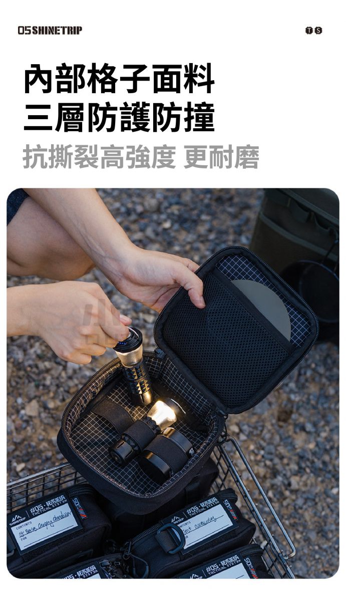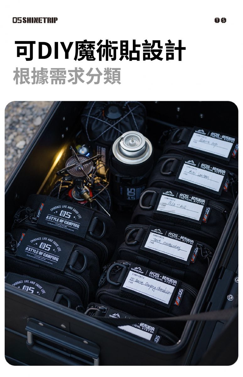MOLLE系統多功能收納包 三層防護防撞,抗撕裂高強度,更耐磨 1000D尼龍布,輕量化高強度面料,疏水性強,更耐磨 背面織帶設計,滿足各種掛法 DIY魔鬼氈設計,可根據需求分類魔鬼氈,系統化收納,方便拿取