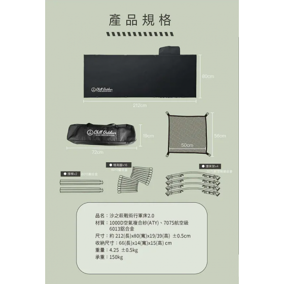 品名:沙之萩戰術行軍床2.0