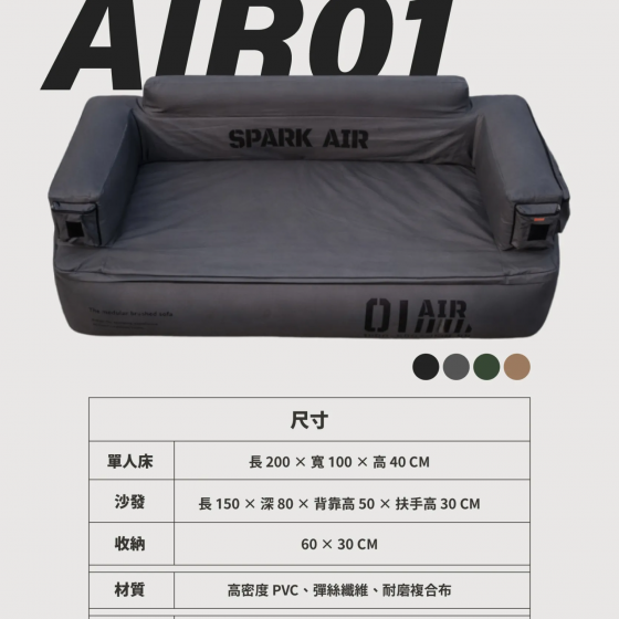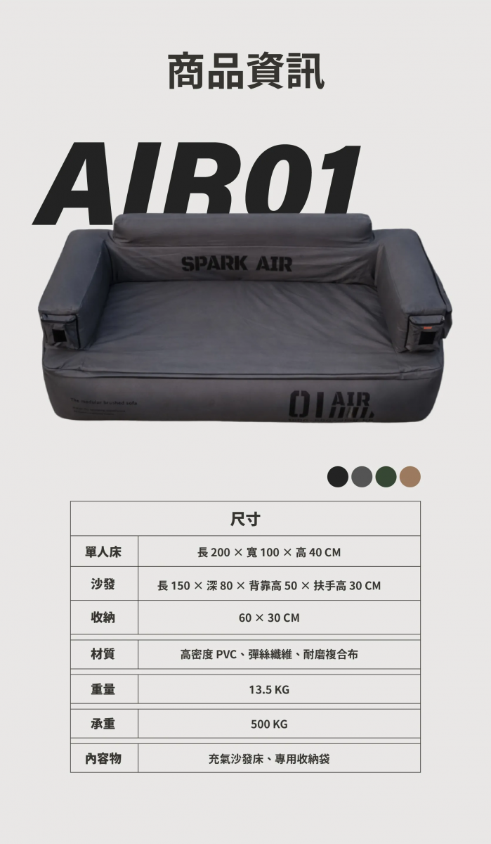 ★商品規格★ #沙發尺寸:長150*深80*背靠高50*扶手高30cm #單人床尺寸:長200*寬100*高40cm #收納尺寸:60*30cm #材質:高密度PVC、彈絲纖維、耐磨複合布 #重量:13.5KG #承重:500KG #內容物:充氣沙發床、專用收納袋