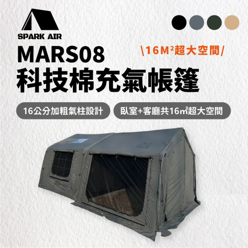SPARK AIR MARS08為主打快速搭建與高穩定性的充氣帳,擁有約16㎡一房一廳空間,適合小家庭與雙人露營。