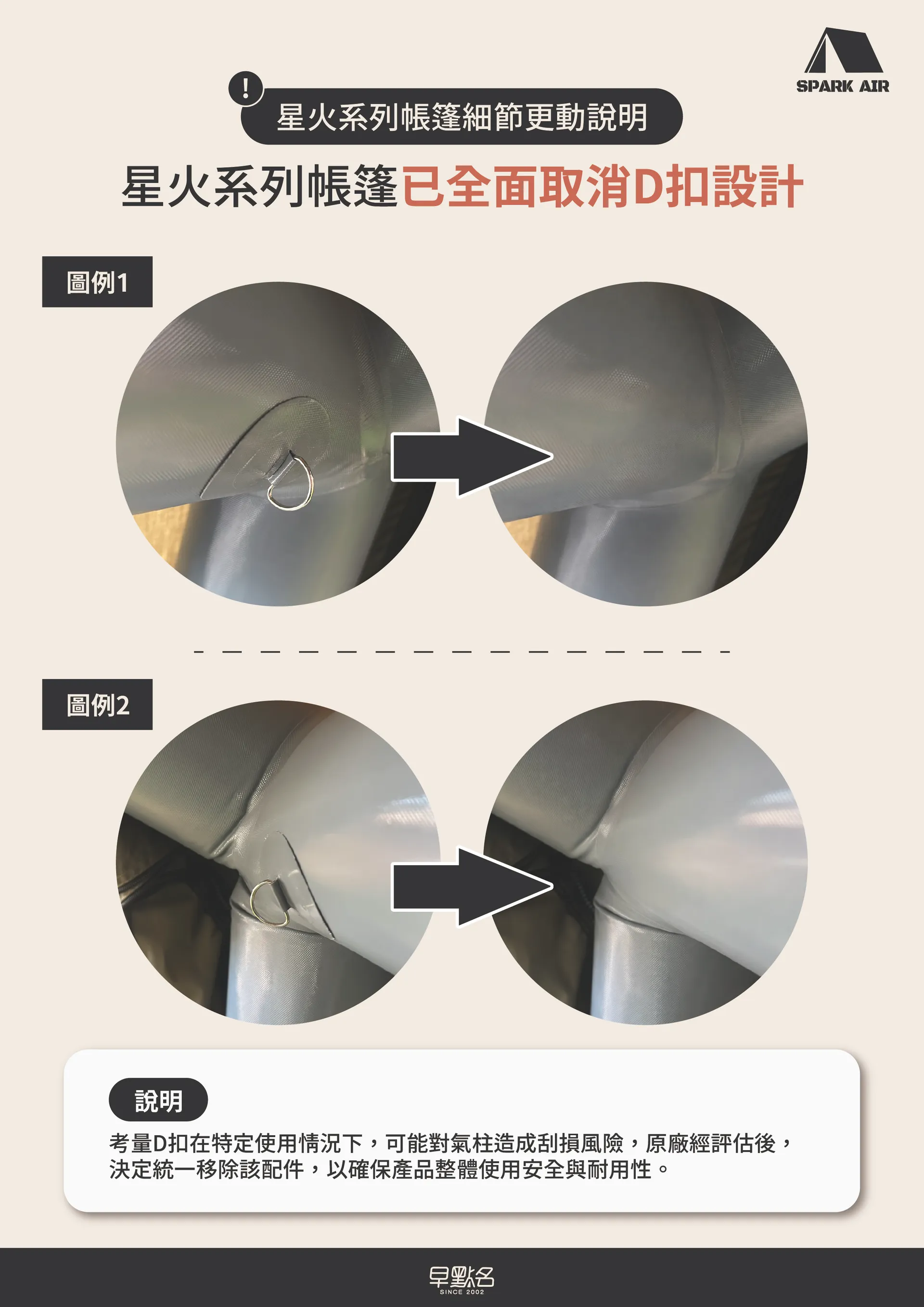 ※星火系列帳篷已全面取消D扣設計※