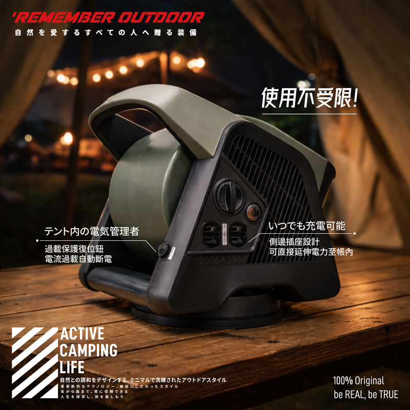 ▍為什麼露營一定要「自動擺頭+插座」?