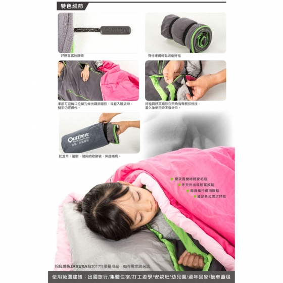 2.可單獨當保暖毯使用,或套入睡袋內增加溫度,可提升5℃~8℃