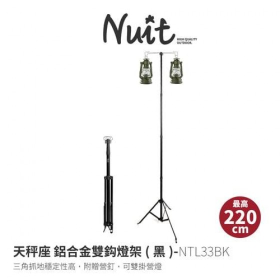 【努特NUIT】天秤座 鋁合金雙鈎燈座 三角燈架 露營燈架 伸縮升降 雙營燈掛鉤 折疊燈架 NTL33BK