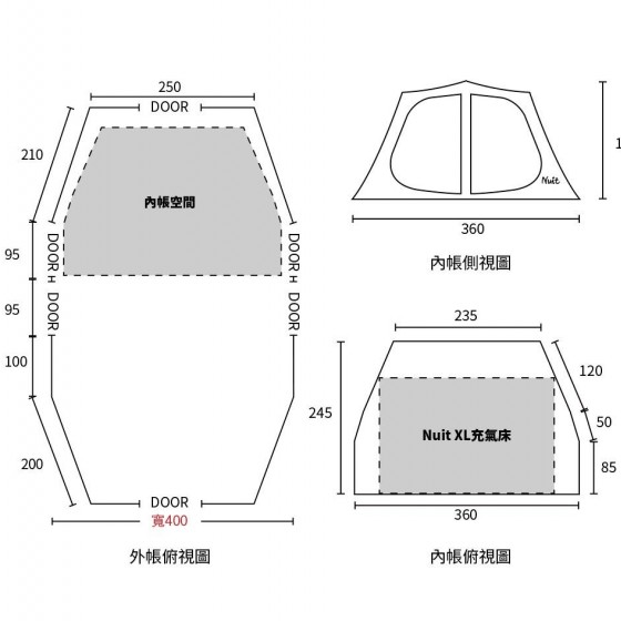 ※超大內帳可搭配,NUIT獨立筒 XL號充氣床做使用。