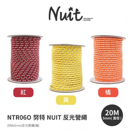 商品型號 : NTR06OG.NTR06RD.NTR06YL 商品名稱 : 努特NUIT 反光營繩 5mm*20m/捆 顏色 : 橘 / 黃 / 紅 尺寸(約) : 直徑5mm ×20M 材質 : PP 重量(約) : 320g --------------------------------------------------- ※3M高反光絲 ※5mm加粗,經久耐用 ※適用大型天幕帳 ※多款可選,單款販售