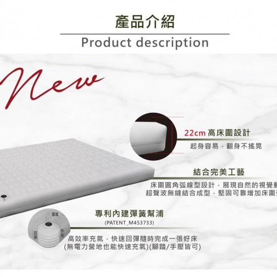※獨創仿家用彈簧床工法,獨立筒氣柱結構,提供完美穩定度