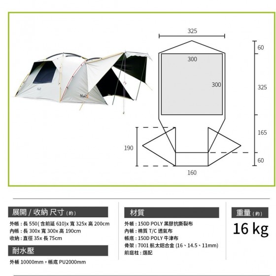商品名稱努特NUIT 山角龍 黑膠300吊掛帳