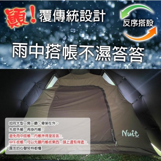 4.反序搭設,雨中搭帳不濕內帳,中午收帳頭有遮