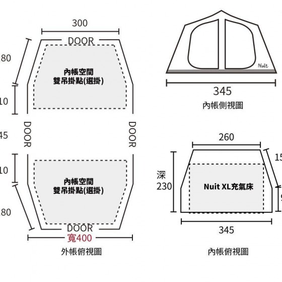 ※超大內帳可搭配,NUIT獨立筒 XL號充氣床做使用。