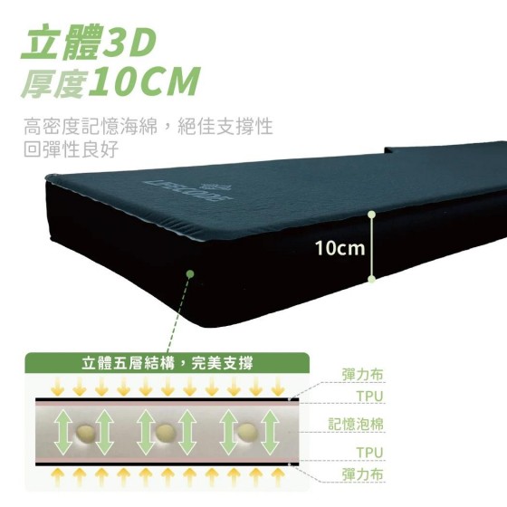 ◆ 立體3D加厚,可自體吸氣至10cm厚,高密度記憶泡棉軟Q好睡
