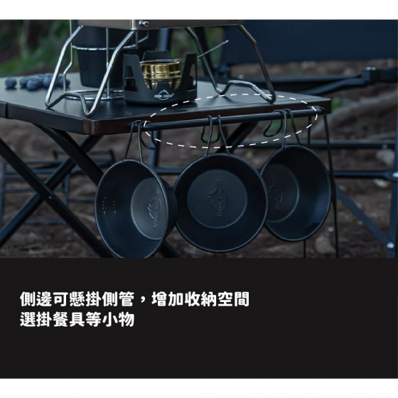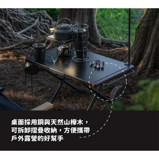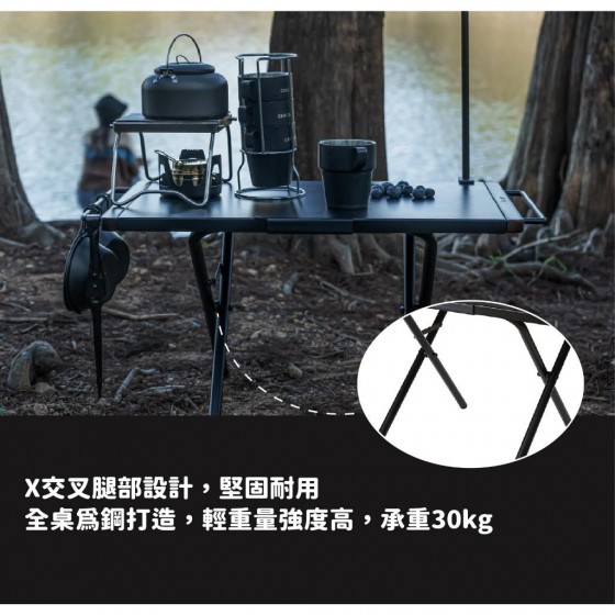 ※桌面採用鋼與天然山櫸木,可拆卸摺疊收納,方便攜帶,戶外露營的好幫手 ※側邊可懸掛側管,增加收納空間,選掛餐具等小物 ※X交叉腿部設計,堅固耐用,全桌為鋼打造,輕重量強度高,可承重30kg ※可在上面烹煮
