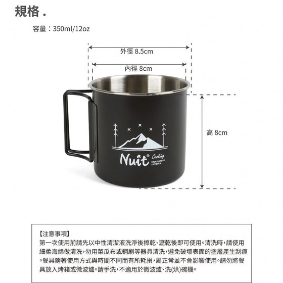 商品名稱 努特NUIT 山遊不鏽鋼摺疊杯 350ML