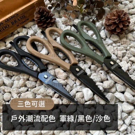 材質:刃身-高級不銹鋼鍍鈦 / 握把-TPR塑料 尺寸:刃長-11cm / 柄寬-8cm / 全長-23cm 顏色:黑色 / 沙色 / 軍綠 產地:中國製造