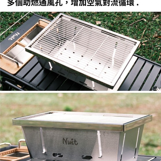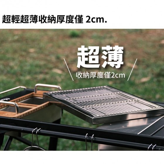 ※一秒展開/收納,輕鬆不費力 ※超輕超薄收納厚度僅2cm ※多個助燃通風孔,增加空氣對流循環 ※加厚不鏽鋼,承重力強穩定性高 ※食品級不鏽鋼烤網,耐高溫不變形 ※也可單獨使用