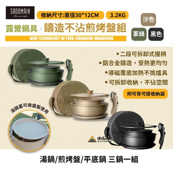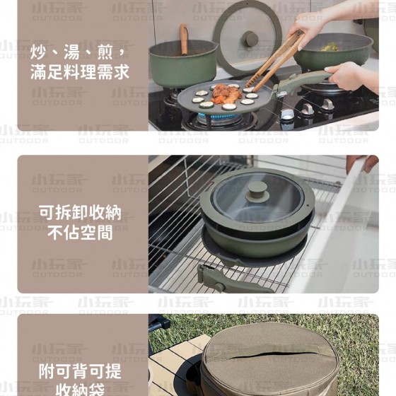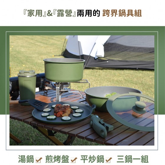炒、湯、煎三鍋一組,滿足露營料理需求