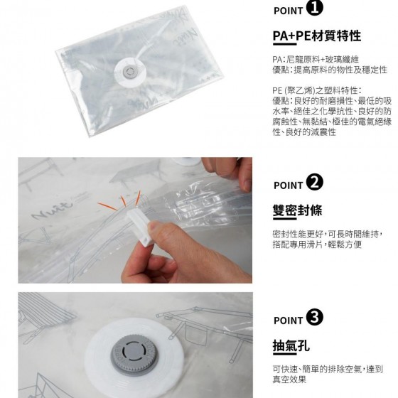 ※抽氣孔,可快速、簡單的排除空氣,達到真空效果