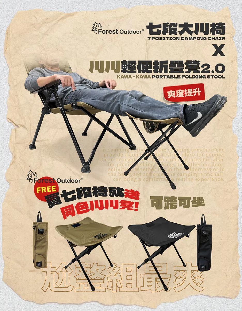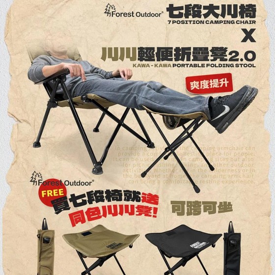 📢買七段大川椅就送同色川川摺疊凳2.0