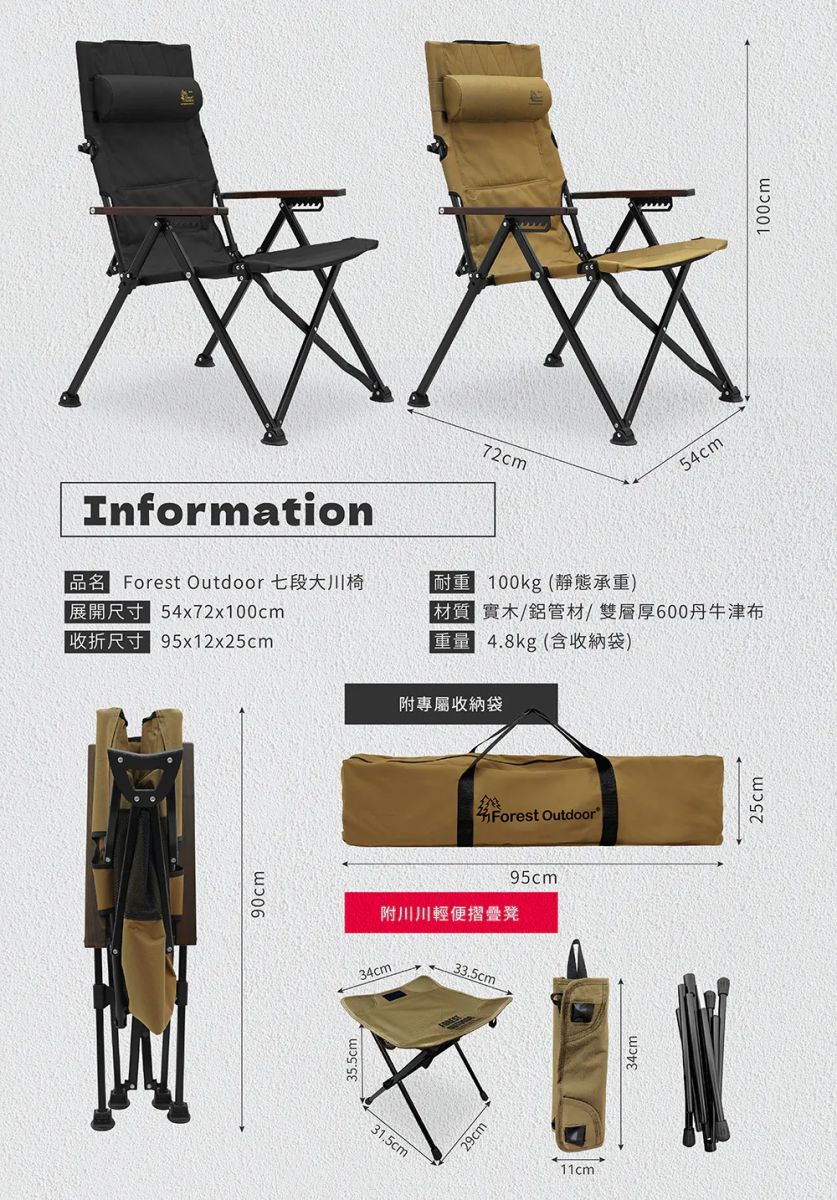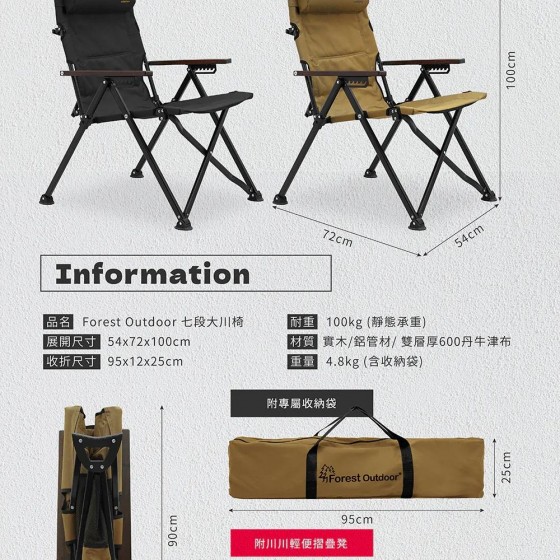 品名:Forest Outdoor 頂級七段傾斜大川椅