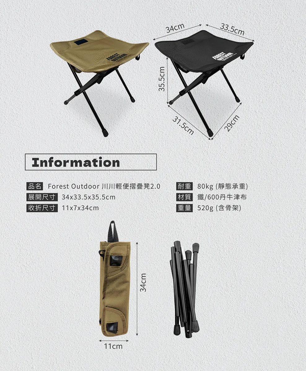 耐重:大川椅100kg(靜態承重)、川川凳80kg(靜態承重)