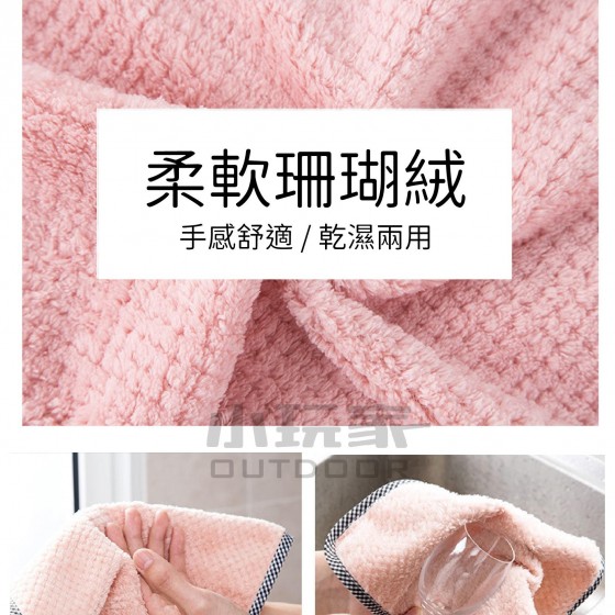 👉柔軟珊瑚絨 手感舒適 / 乾濕兩用 👉擦手擦物皆適宜👏👏👏 👉觸感細膩,不易褪色掉毛 👉去污能力強 擦碗、鍋具油汙、清洗方便 👉可掛式設計 收納方便 不佔位置 👉適用範圍廣 方便且便利