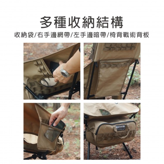 ●超立體剪裁戰術收納袋與椅架可搭配使用