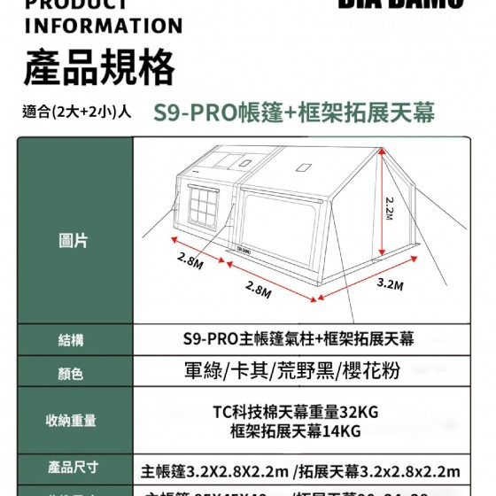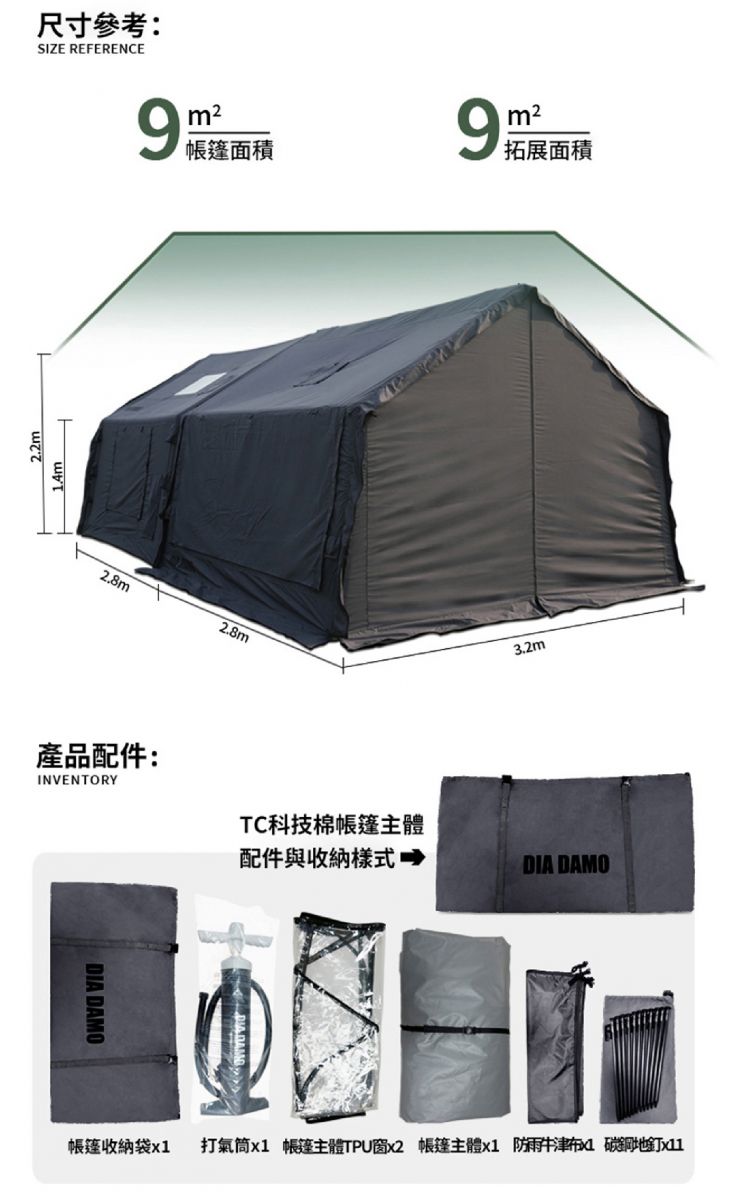 DIADAMO 迪達蒙 S9/S13 露營科技棉充氣帳篷 帳篷 科技棉 充氣帳篷 充氣帳 露營 野營
