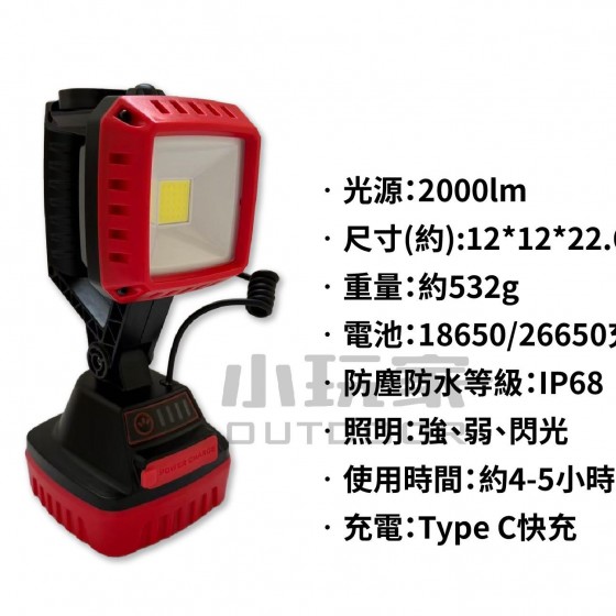👉亮度2000lm,180°擺頭設計,‧IP68防水