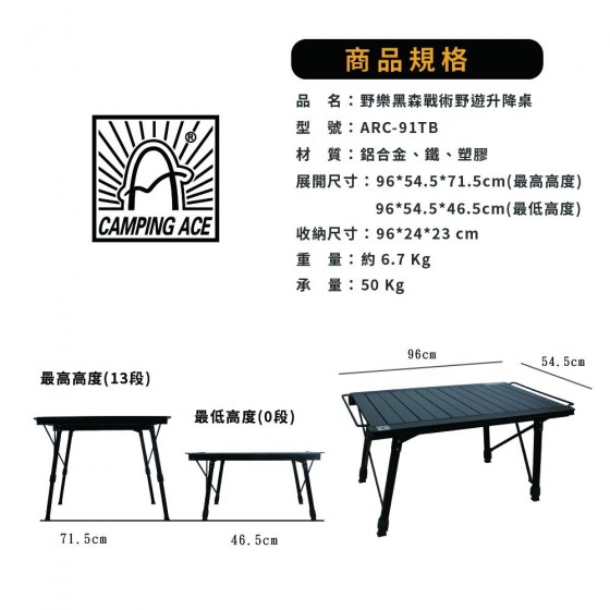 品名:CAMPING ACE野樂黑森戰術野遊升降桌