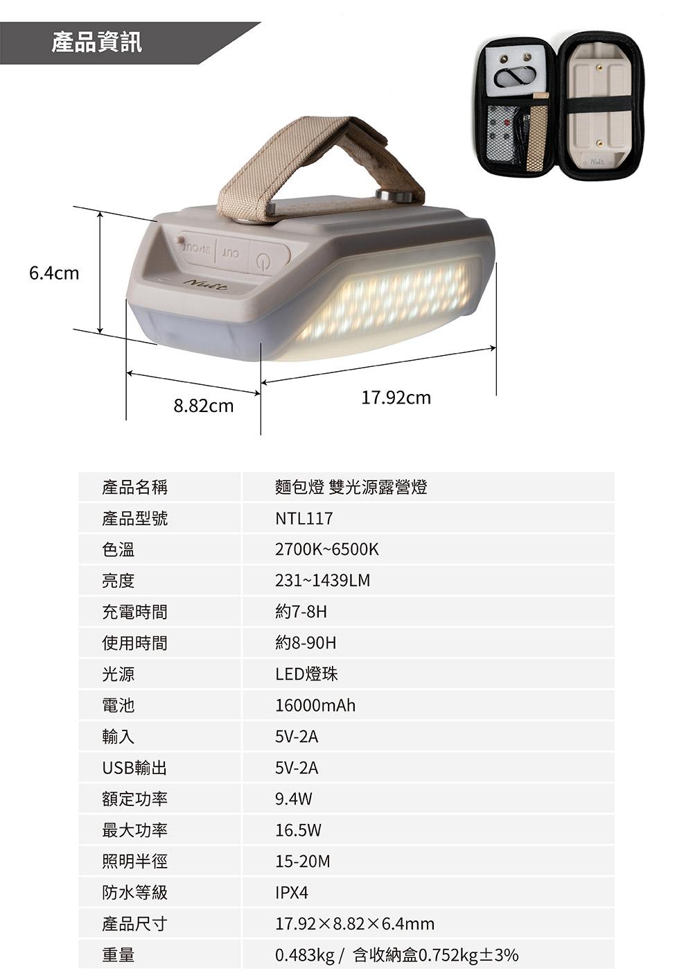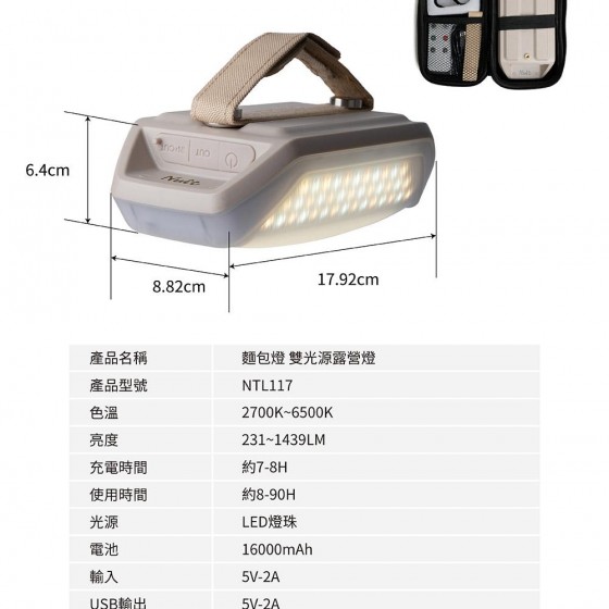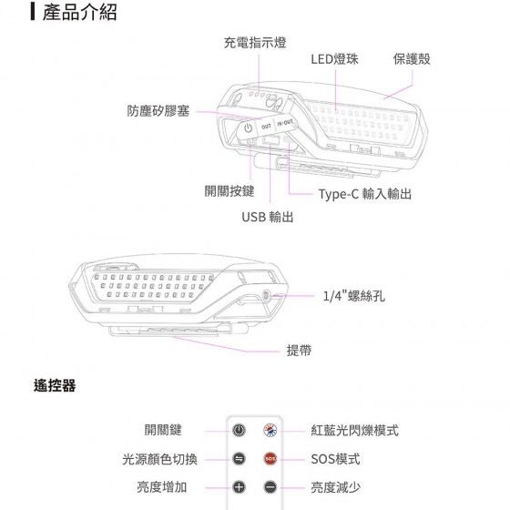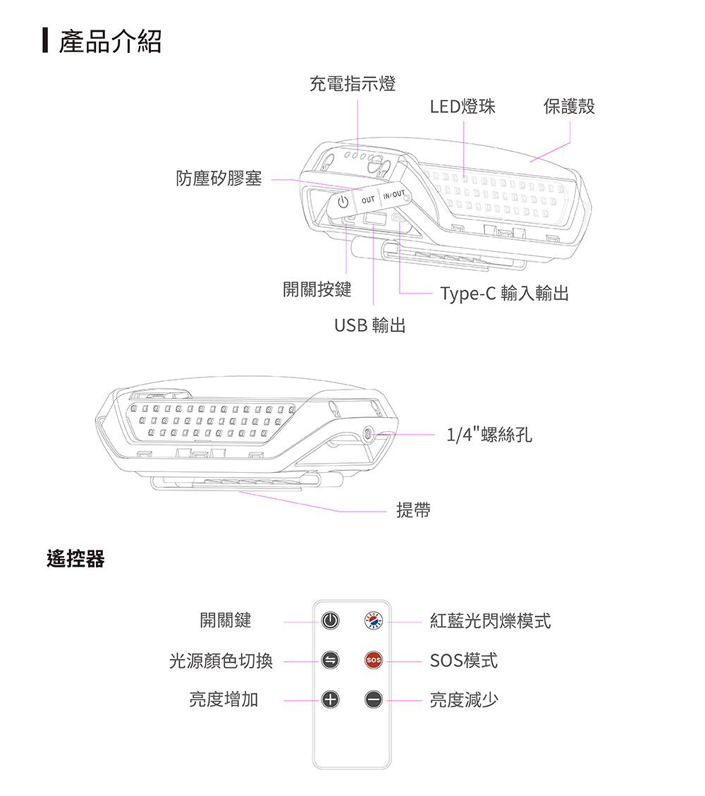 ※16000mAh大容量 可持續照明約8-90H,可當行動電源為3C產品充電