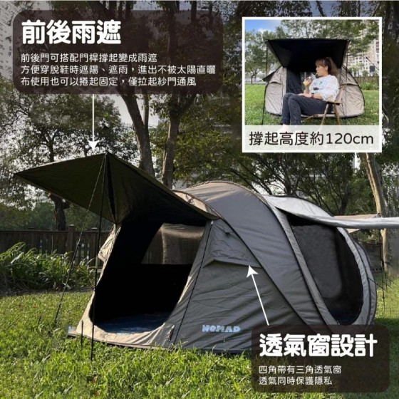 🚫帳篷門即為雨遮有拉鍊可關門,內部還有一層紗網
