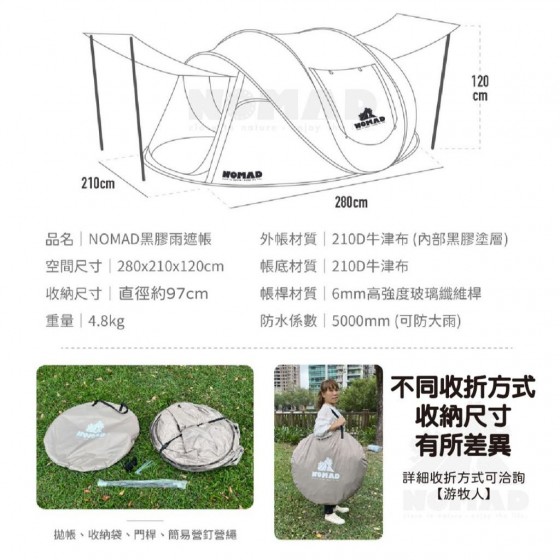 🔹展開尺寸|280 x 210 x 120 cm(不含雨遮部分)