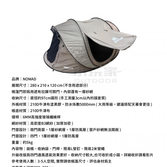 🔹品名|NOMAD全遮光黑膠速開拋帳-奶茶色(帳內全黑膠)