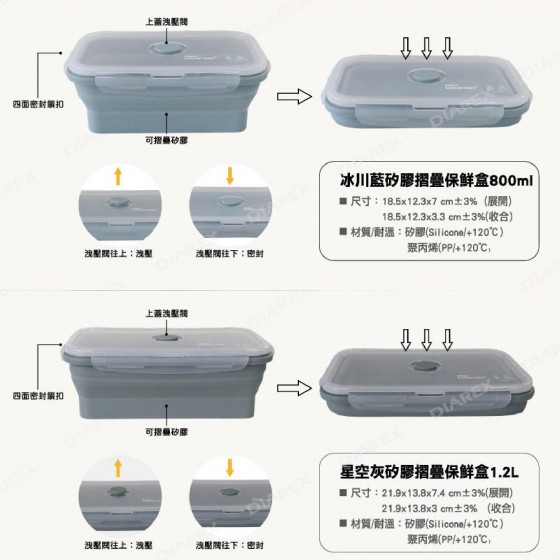 • 上蓋四面鎖扣、內置矽膠圈,密封保鮮!