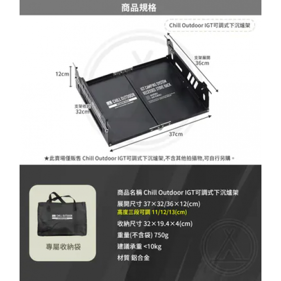 名稱:Chill Outdoor IGT可調式下沉爐架