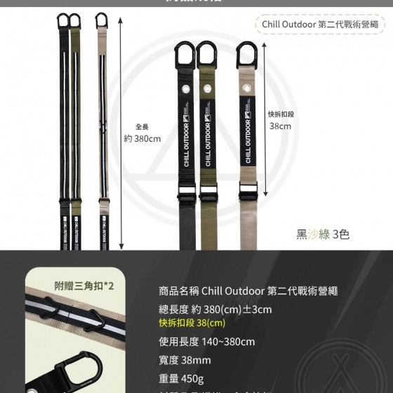 ◆戰術營繩,適合帳篷、天幕等多功能固定使用