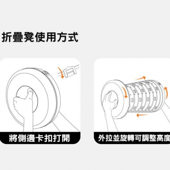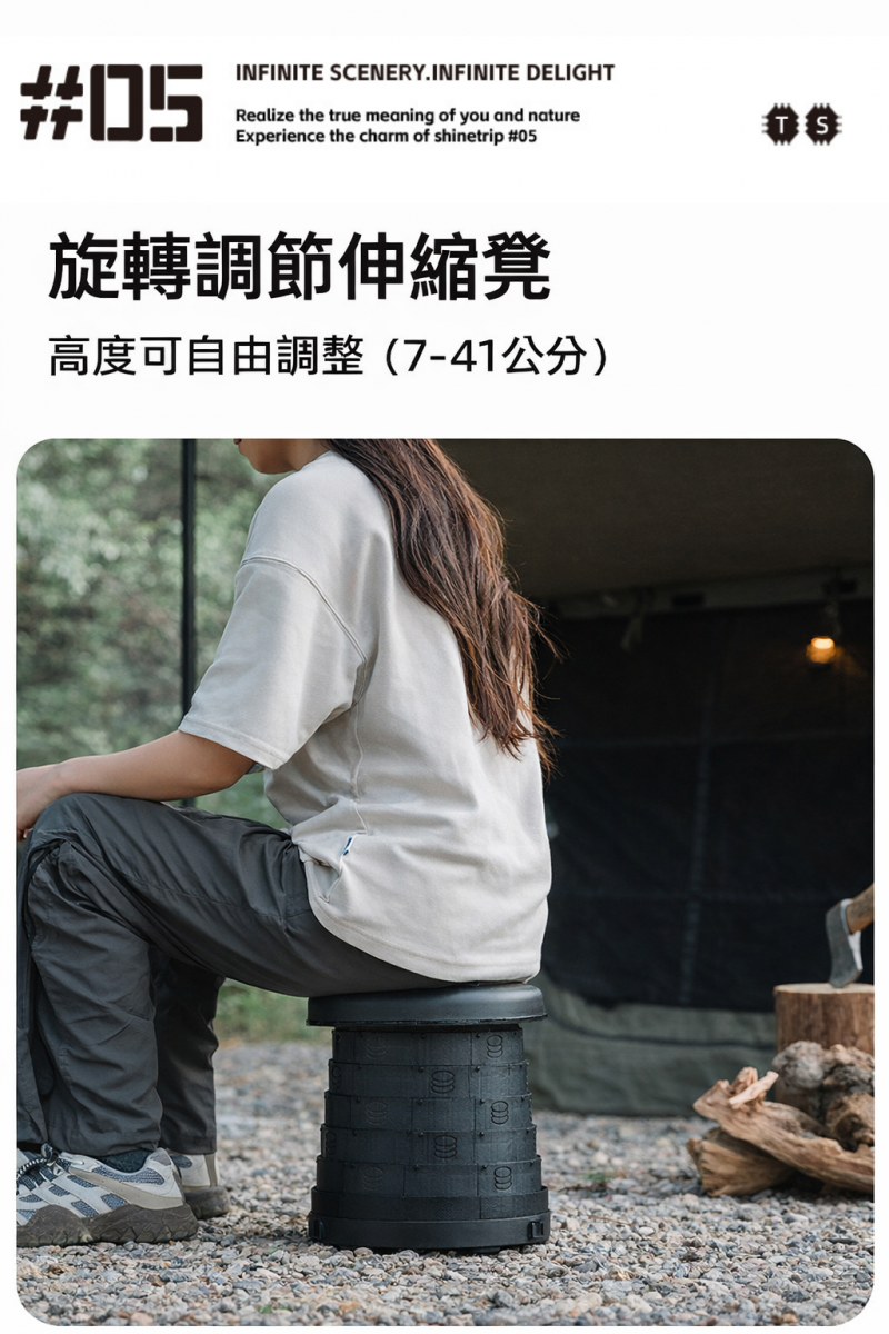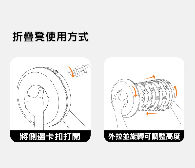 >旋轉調節伸縮凳,7-41cm高度無段式調節。