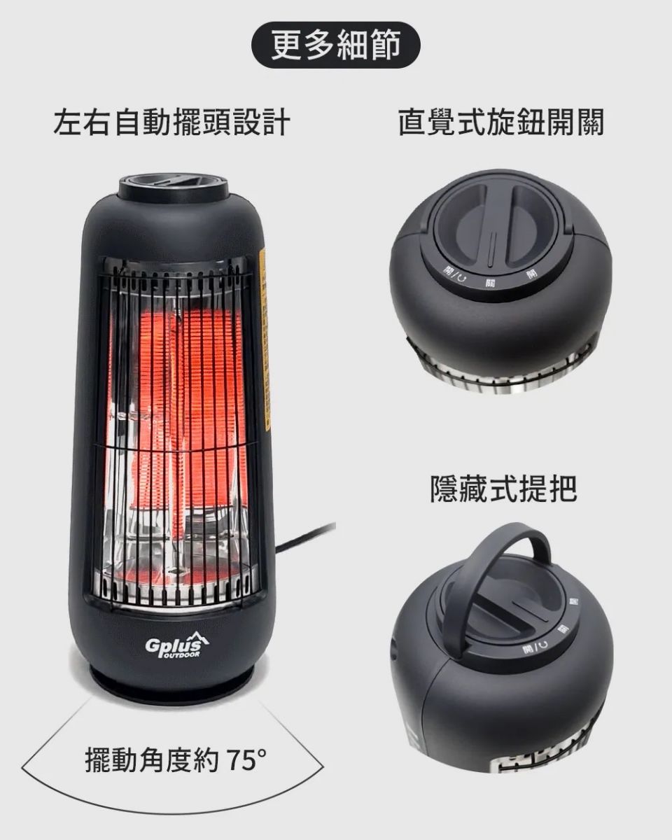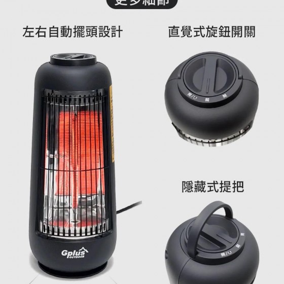 《超取每單限購一台》 《超取每單限購一台》 Gplus野營裡的無煙火爐 GP-EM001直立式電暖器 ※ 快速發熱 ※ 傾倒保護 ※ 左右擺頭 產品型號:GP-EM001 額定電壓:AC110V 消耗功率:300W 產品總重:1.4Kg(含包裝) 產品顏色:鐵灰、沙色 額定頻率:60Hz 產品淨重:1.0kg(機身重量) 機體尺寸:156X156X366(mm)