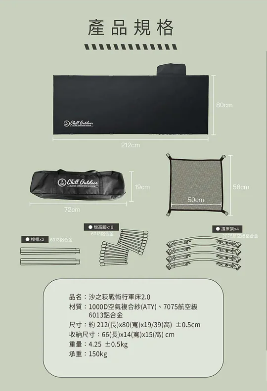 品名:沙之萩戰術行軍床2.0