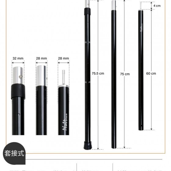 商品名稱 : 努特NUIT 喀拉可KLUCK 高強度T6鋁合金營柱130~260CM