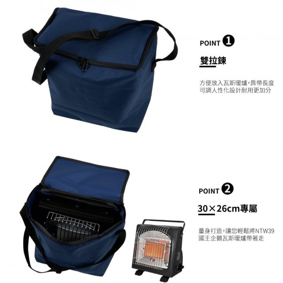 商品型號 : NTE89 商品名稱 : 國王企鵝瓦斯暖爐專用攜行袋 NTW39專用 保護收納袋 尺寸(約) : 30×26×15.5cm 材質 : 聚酯纖維 重量 : 220g±3% ----------------------------------------------------------------------- ※專為努特 國王企鵝瓦斯暖爐NTW39 量身打造 ※雙拉鏈好操作 ※易清洗好攜帶