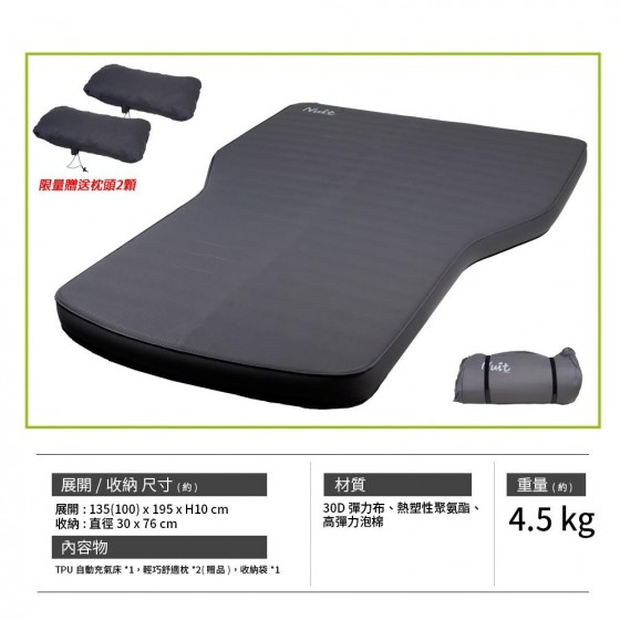 商品名稱 : 努特NUIT 旅行者 3D TPU 自動充氣睡墊10公分 車露版