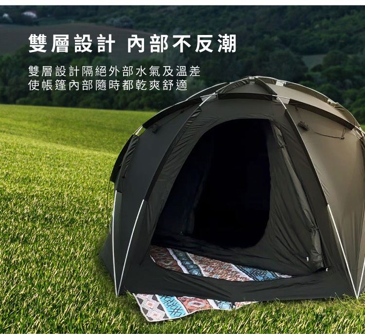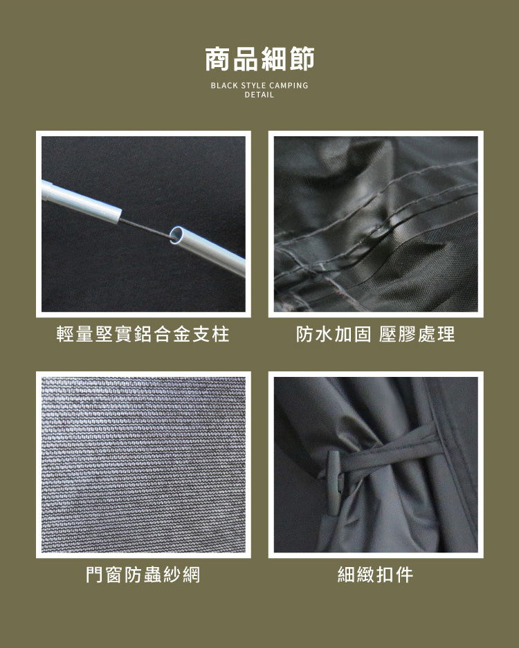 外帳材質-外帳:75D聚酯纖維/底布:210D牛津布/支柱:鋁合金